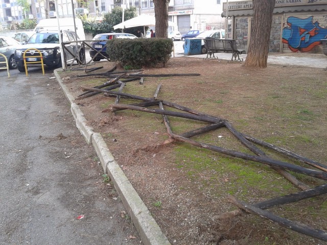 Oggi giovedì 2 gennaio 2014 , ne approfitto per fare a tutti gli Auguri di un Buon Anno, ricco di tante soddisfazioni professionali, amorose e di buon salute, oggi, nella piazza Italo Stagno, tra la traffica via Abruzzi e via Premuda a Cagliari, a cavallo dell’edicola e dell’asilo comunale, mi sono imbattuto in questo scempio, un atto vandalico bello e buono, come potete vedere dal video.