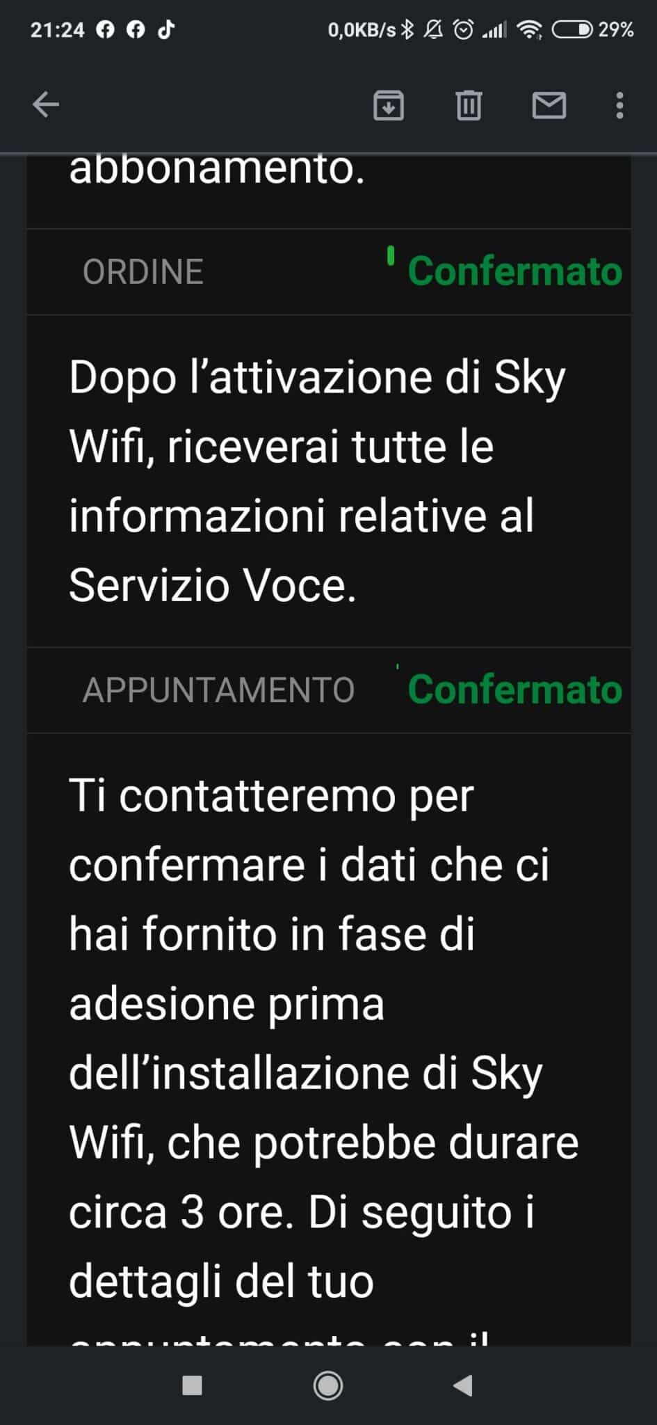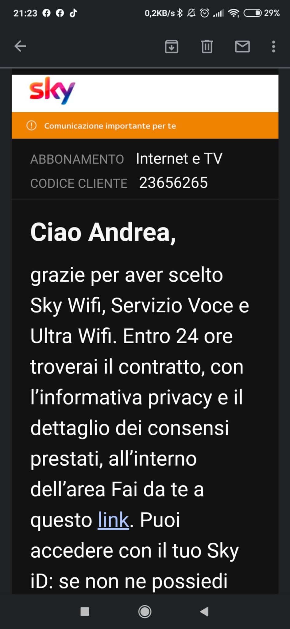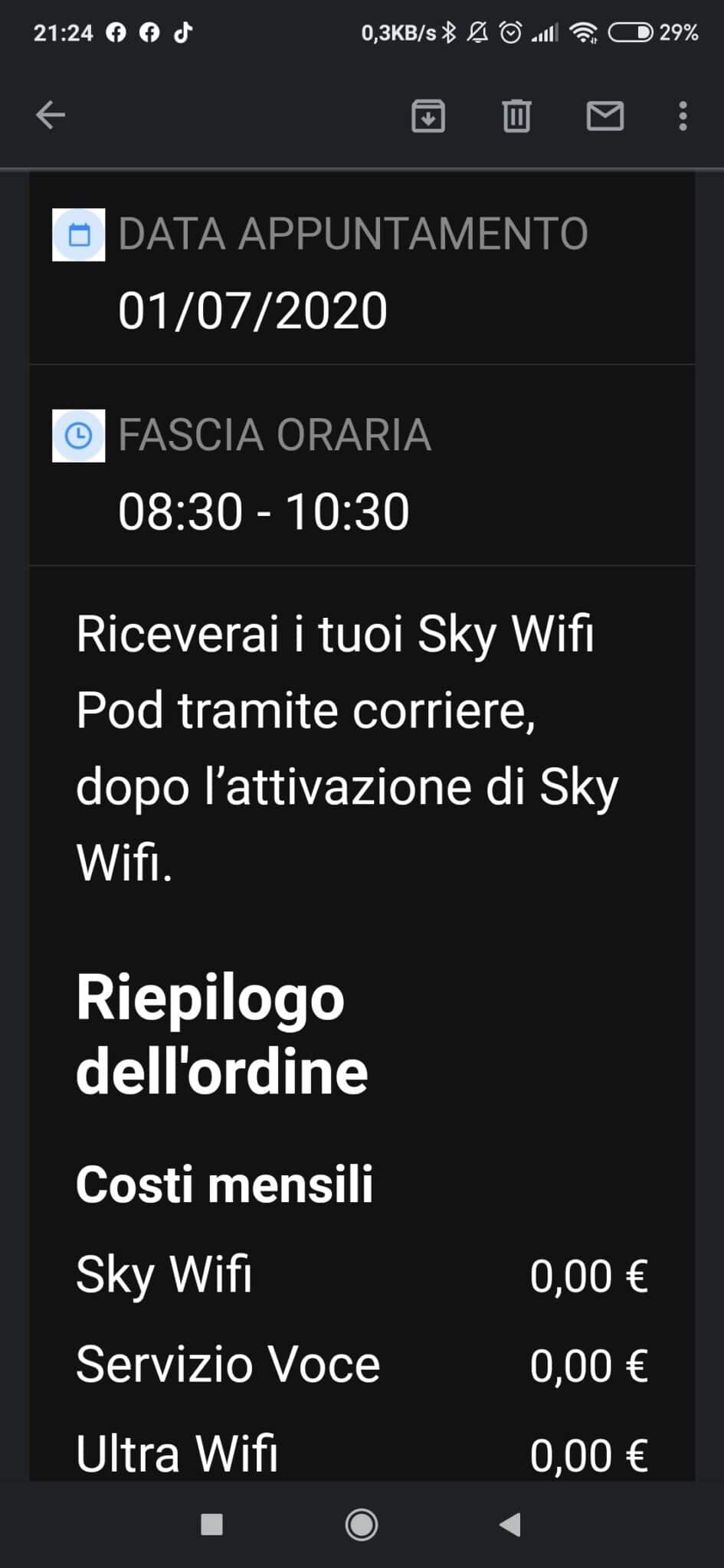 E’ stato attivato oggi, 25 giugno 2020 la prima fibra mille mega da 1 gigabit di Sky chiamata SkyWifi.